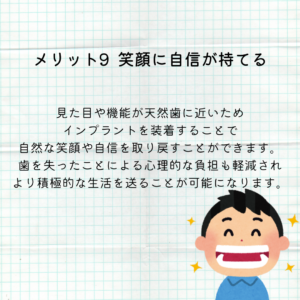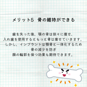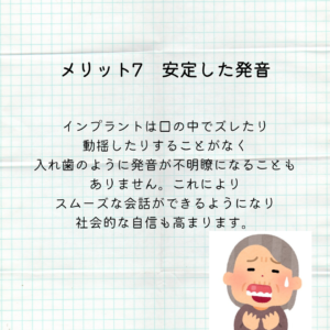 前回に引き続きインプラント治療のメリットPart2を紹介します。