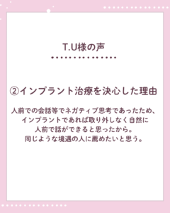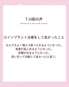 今後もインプラント治療をされた方の実際の声やbefore &afterを掲載していく予定です❕