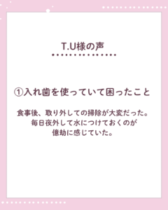 今回はAll-on-4のインプラントをされた方の治療後のアンケートをご紹介します!